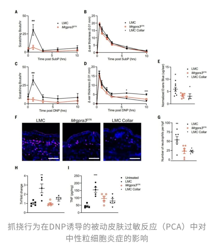 为了弄清楚清楚那些促使我们抓痒的神经元是如何影响瘙痒和炎症反应的,研究人员设计了Mrgpra3DTR小鼠模型。这个小鼠模型有个神奇的能力——可以精确地消除那些负责传递“痒”信号的神经元。换句话说,小鼠的“抓痒”神经元可以被“关闭”,让研究人员能够专心研究这些神经元到底在皮肤痒和炎症反应中发挥了什么样的作用。